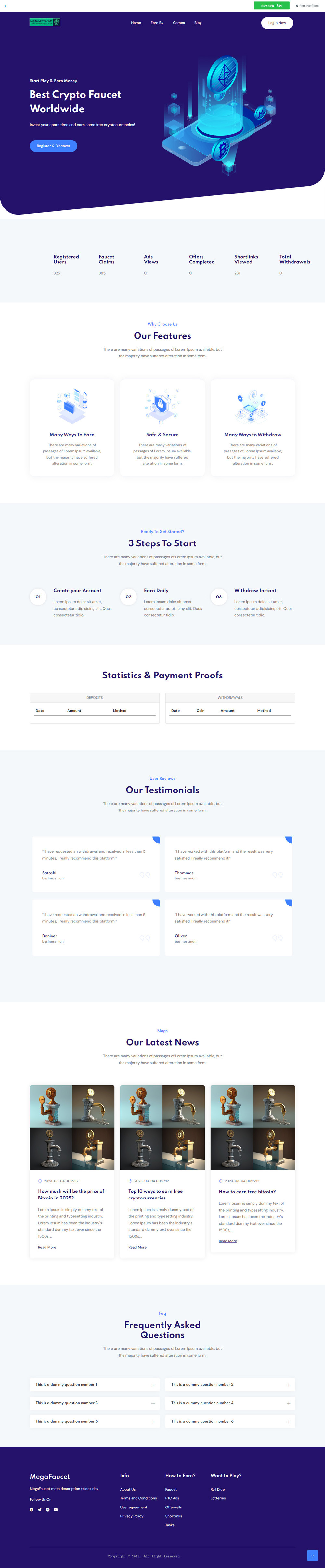 Overall, the crypto faucet PHP script built with Laravel framework provides users with a comprehensive set of features related to cryptocurrencies. It's a great way for users to earn coins and learn more about cryptocurrencies while also having fun by completing tasks.